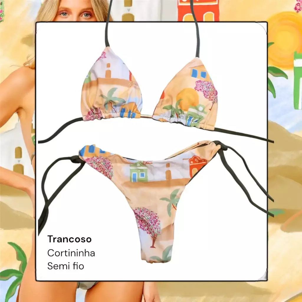 Conjunto de Bikini cortininha com calcinha fio duplo.