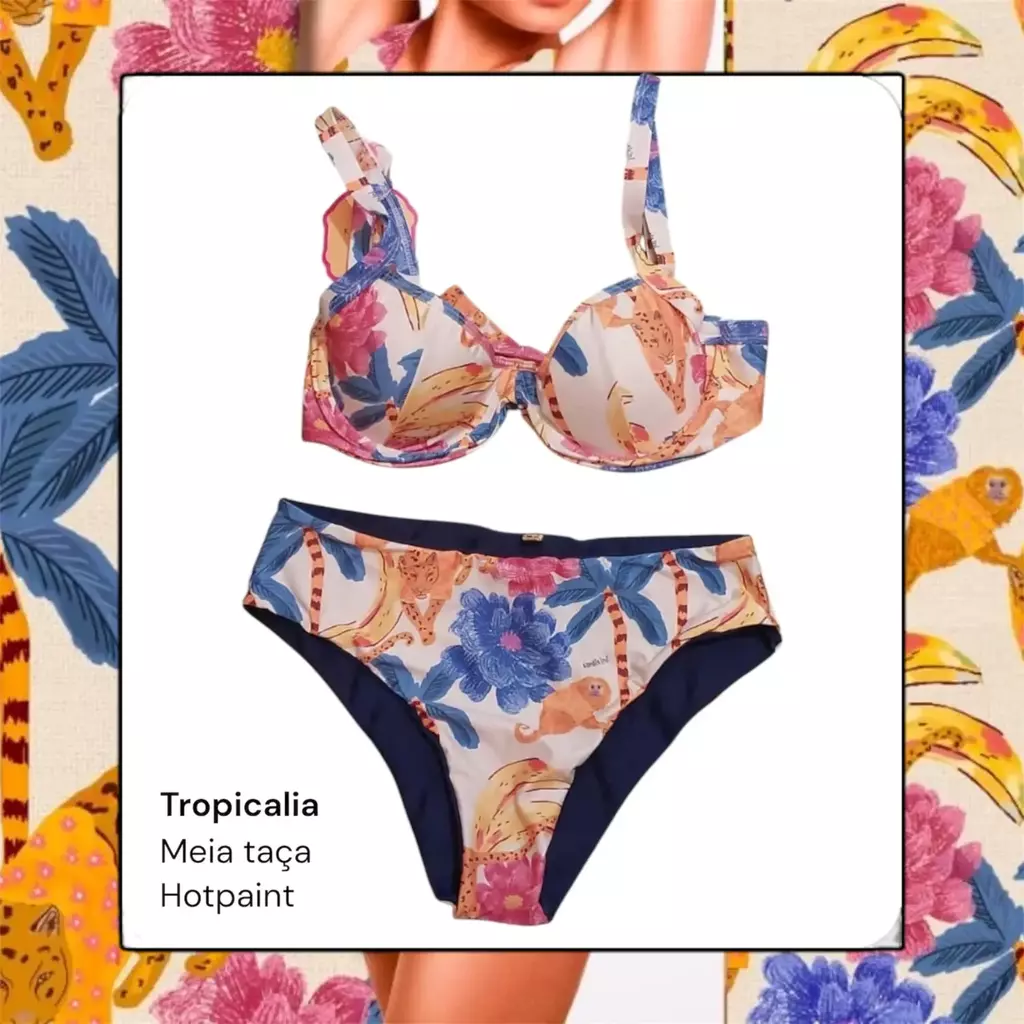 Conjunto de Bikini com Top meia taça e calcinha hotpaint dupla face.